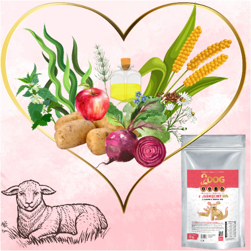 2DOG Premium – Jagnięcina z Prosem, Burakiem i Jabłkiem to naturalna, sucha karma stworzona z myślą o zdrowiu, dobrej kondycji i długim życiu Twojego psa.