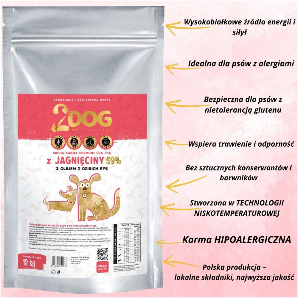 SUCHA KARMA DLA PSA 2Dog JAGNIĘCINA 12kg ZIMNOTŁOCZONA HIPOALERGICZNA MONO
